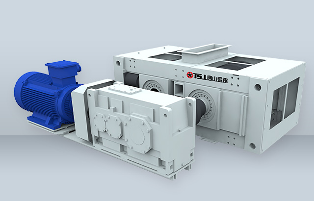 該機工作原理與輥壓機相近,采用了料層擠壓破碎的理念,其主體是由一對相互平行、水平安裝的圓柱形輥子組成,分別由兩套彼此獨立的動力裝置驅(qū)動。當(dāng)這對輥子做相向運轉(zhuǎn)時,進入喂料口的物料受到輥子的擠壓、沖擊、磨削而細碎,并隨自身重力被旋轉(zhuǎn)的輥子甩出,向下卸落。